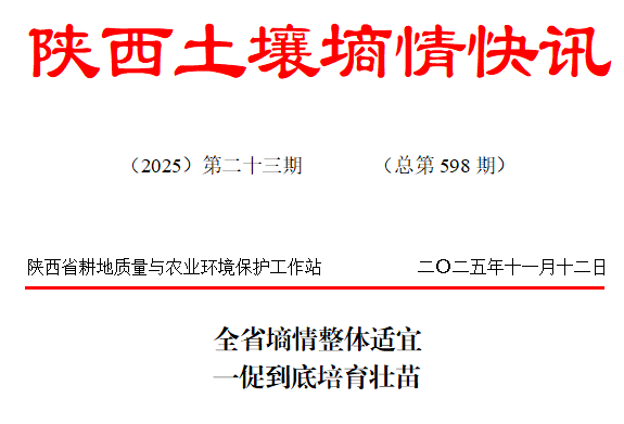 二、墒情监测及评价结果。据11月10日-11日土壤墒情监测调度:渭北、关中、陕南土壤相对含水量(0-20cm)平均值分别为80.8%、82.8%、77.9%,(20-40cm)平均值分别为81.0%、84.9%、80.1%。据土壤墒情与旱情评价指标判定:(0-40cm)渭北、关中、陕南土壤墒情整体适宜,局地过多。