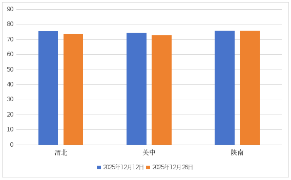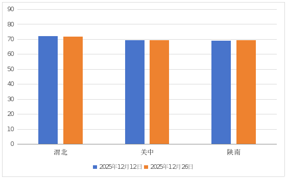 与12月12日监测结果相比:(0-20cm)土壤相对含水量渭北下降0.4个百分点,关中持平,陕南上升0.4个百分点;(20-40cm)土壤相对含水量渭北、关中分别下降1.7、1.9个百分点,陕南上升0.1个百分点。