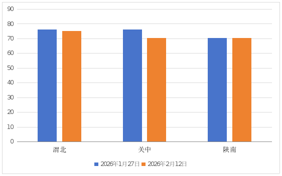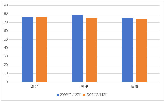 二、墒情监测及评价结果。据2月9日-11日土壤墒情监测调度:渭北、关中、陕南土壤相对含水量(0-20cm)平均值分别为75.2%、70.5%、70.3%;(20-40cm)平均值分别为76.3%、74.8%、74.3%。据土壤墒情与旱情评价指标判定:(0-40cm)渭北、关中、陕南土壤墒情整体适宜。其中,蒲城(0-40cm)旱地土壤相对含水量平均值58%,轻旱。