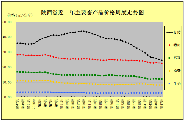 从区域分析,陕南地区仔猪平均价格26.04元/公斤,环比下降1.96%,活猪平均价格12.67元/公斤,环比上涨0.40%,猪肉平均价格22.93元/公斤,环比下降0.74%;关中地区仔猪平均价格23.07元/公斤,环比下降2.37%,活猪平均价格11.60元/公斤,环比下降1.19%,猪肉平均价格21.98元/公斤,环比下降0.86%;陕北地区仔猪平均价格25.31元/公斤,环比下降3.10%,活猪平均价格12.31元/公斤,环比下降0.40%,猪肉平均价格23.61元/公斤,环比下降0.08%。