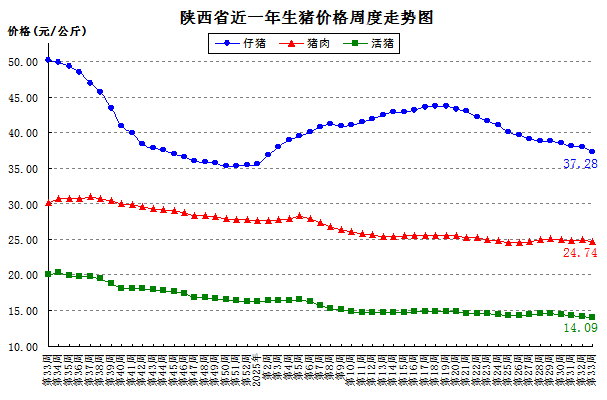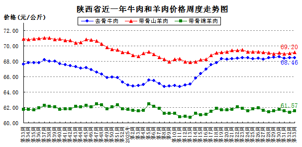近一年全省主要畜产品价格周度走势图 2025-08-13
