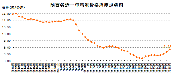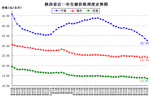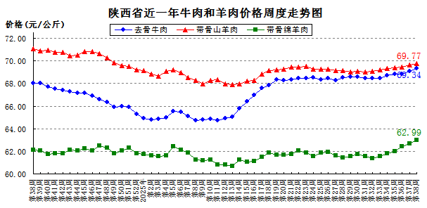 近一年全省主要畜产品价格周度走势图 2025-09-17