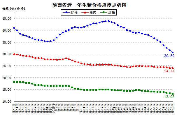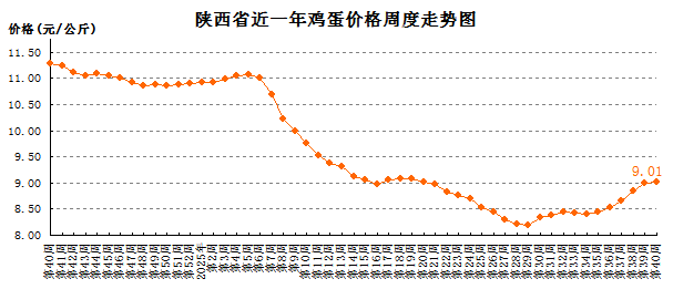 近一年全省主要畜产品价格周度走势图 2025-09-30