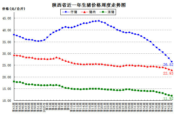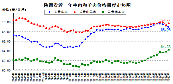 近一年全省主要畜产品价格周度走势图 2025-10-22