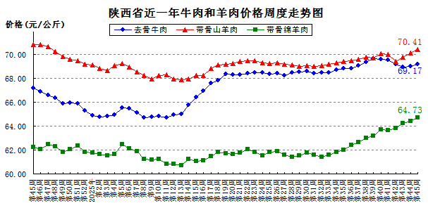 近一年全省主要畜产品价格周度走势图 2025-11-05