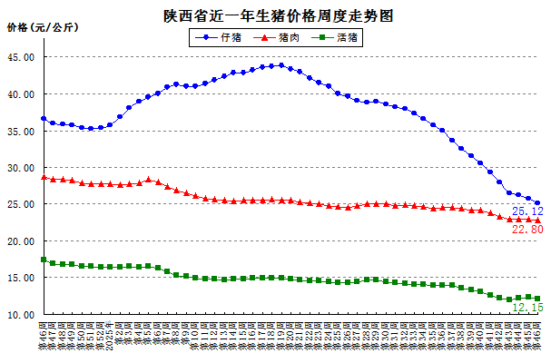 近一年全省主要畜产品价格周度走势图 2025-11-12