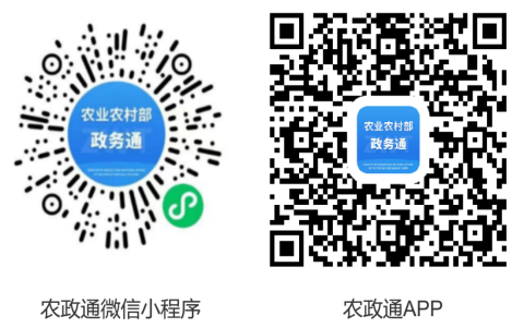 1.进入“农政通”微信小程序/APP。移动端支持微信小程序和APP客户端,小程序在微信“小程序”页面输入“农政通”搜索或扫描图4-1中的微信小程序二维码;安卓APP客户端扫描图4-1中的农政通APP二维码下载。(备注:“农政通”APP不支持IOS系统,IOS用户通过微信小程序访问。)