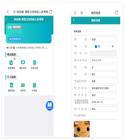 手机端“兽医卫生检验人员考核信息系统”操作指南