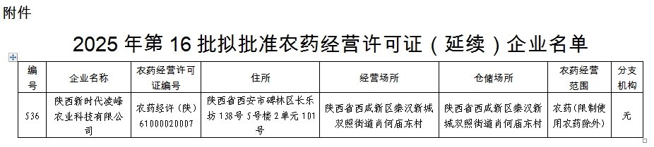 附件:2025年第16批拟批准农药经营许可(延续)企业名单