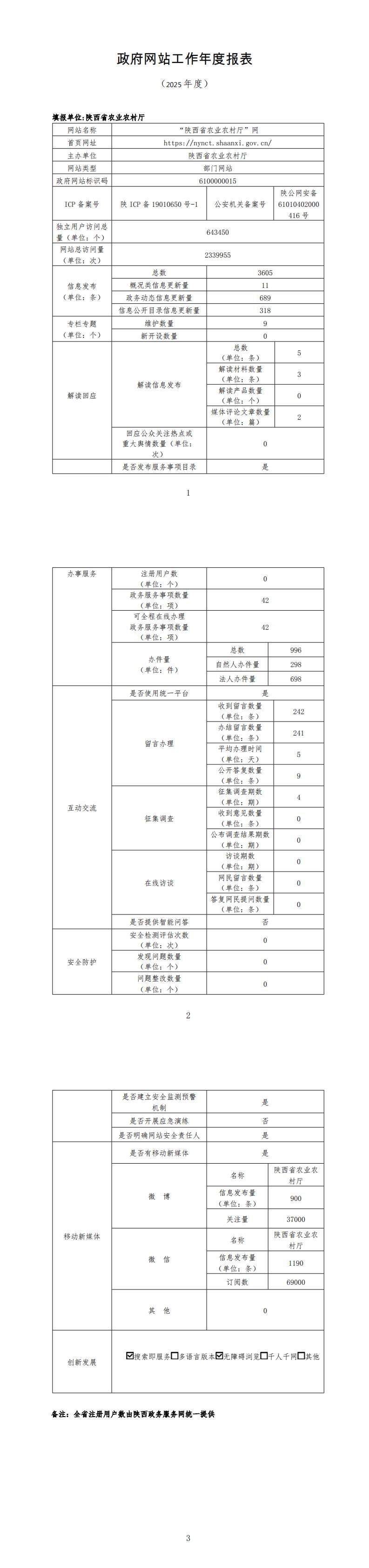 陕西省农业农村厅政府网站工作年度报表(2025年度)